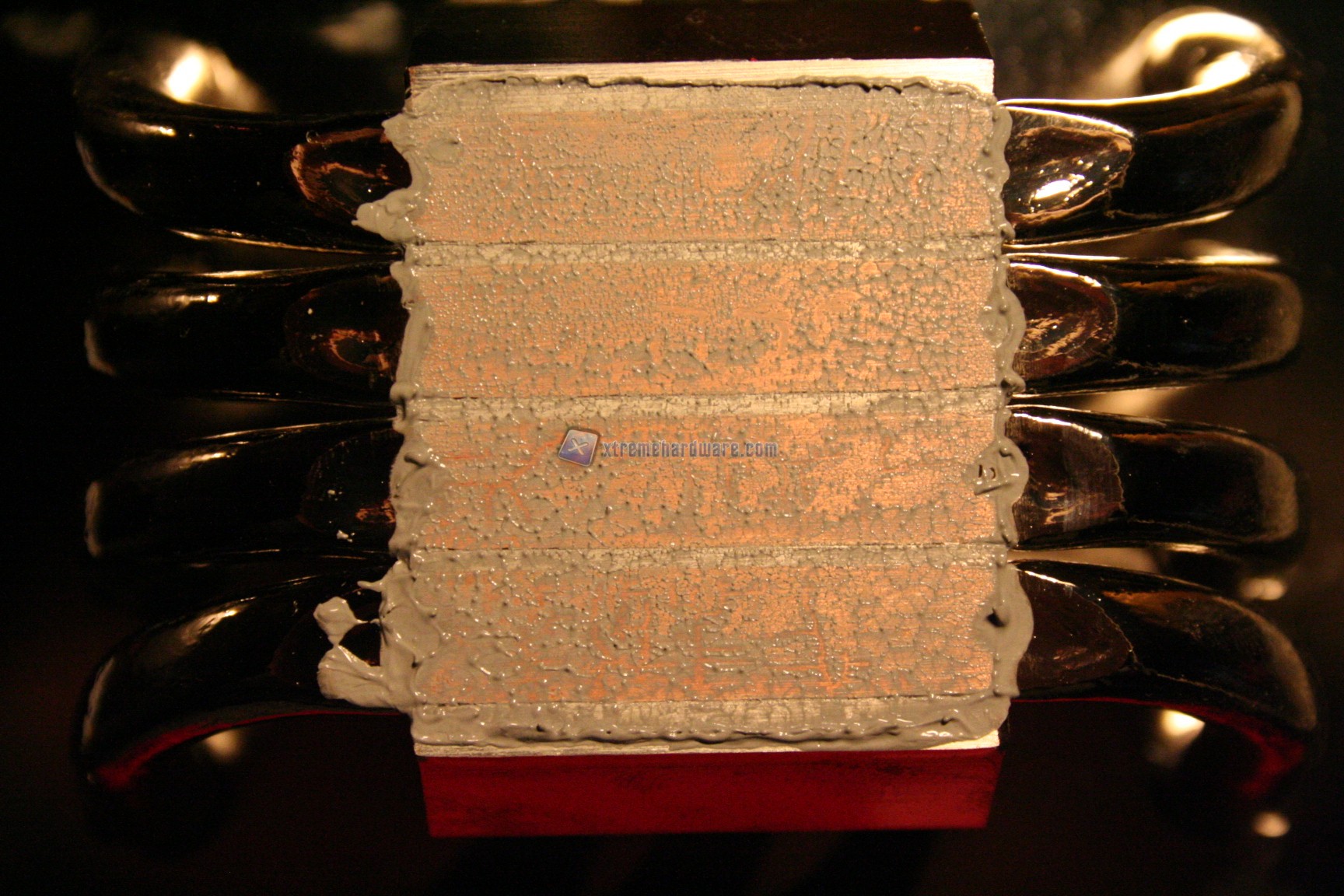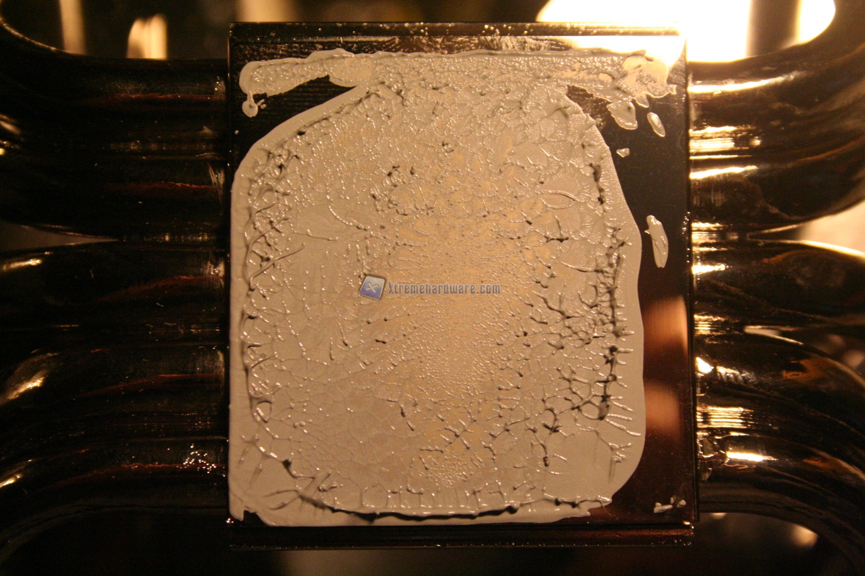 Il dissipatore presenta un’altezza dalla scheda madre contenuta ed è sulla stessa linea l’altezza della ventola dal PCB della scheda madre. Purtroppo non è possibile rialzarla, e questo è un punto a sfavore. Ecco un paio di fotografie dell’impronta termica: