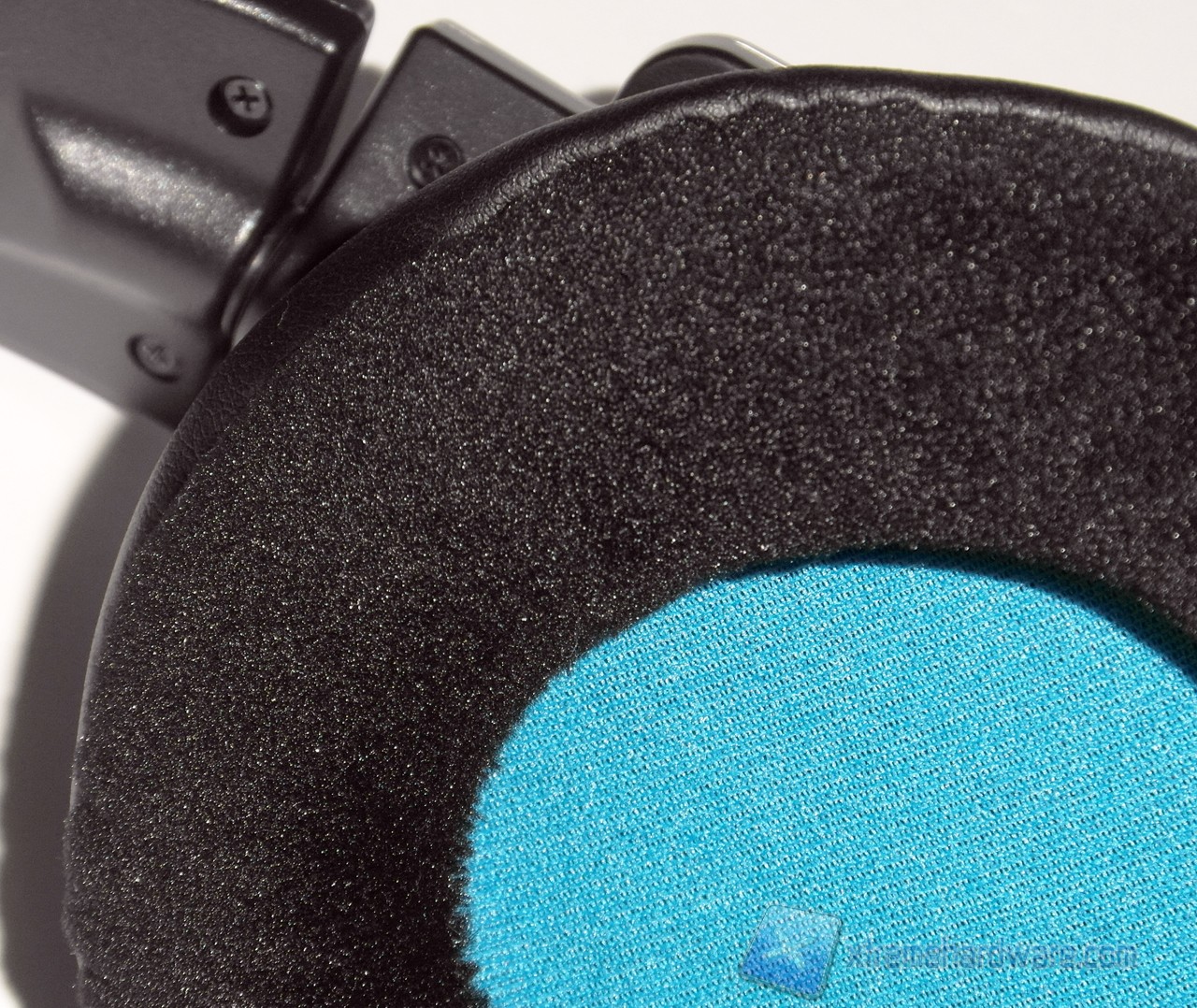 Poco sopra ai padiglioni sono presenti gli snodi che permettono la rotazione dei medesimi. I driver sono infine ricoperti da una tela azzurra (che riprende la linea esterna), mentre il comfort è garantito dai cuscinetti in microfibra che hanno memoria di forma, per massimizzare la comodità delle cuffie una volta indossate.