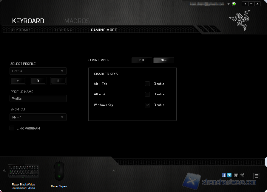 Gaming Mode è la TAB dedicata alla configurazione dell'omonima modalità, è possibile inibire alcuni comandi rapidi tipici di Windows che possono portare alla chiusura (o riduzione ad icona) del gioco.