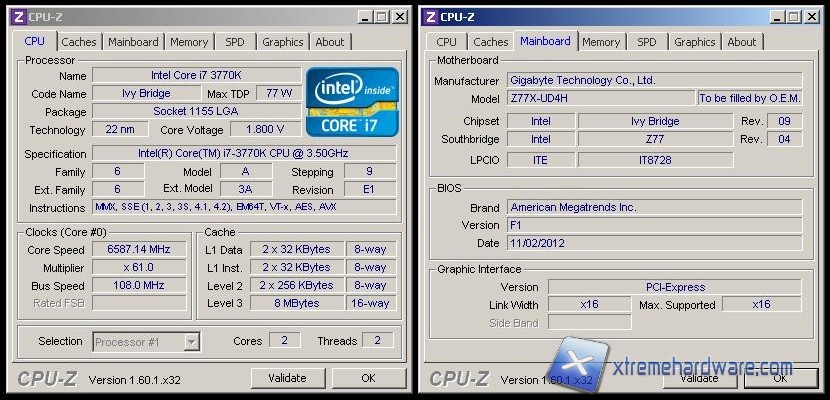 Anche a bassissima temperatura, con il processore che ad oltre i 6 GHz assorbe una notevole quantità di corrente confermiamo l’ottima sezione di alimentazione della Z77X-UD4H e poiché il processore a tali frequenza supera come consumo i 200 Watt, generare solo 0,002volt di Vdroop è senza ombra di dubbio un risultato ottimo. Siamo riusciti ad operare stabilmente senza il minimo segno di Fake-Boot effettuando il Boot ad una frequenza di Bclk di 108Mhz.