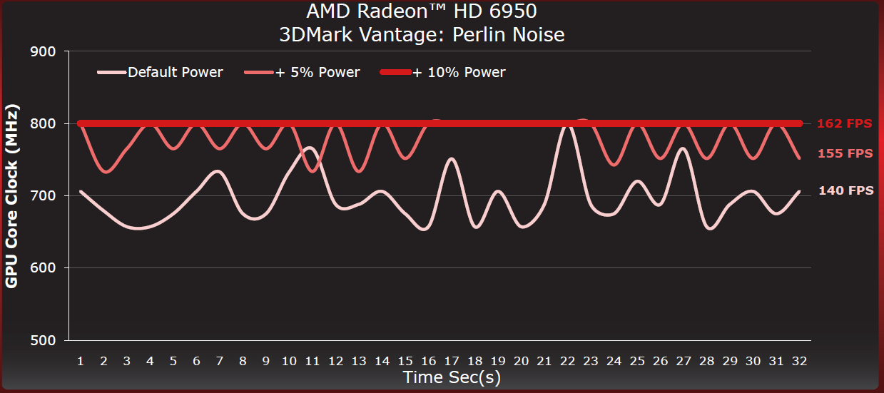 Con PowerTune, AMD introduce una regolazione fine e dinamica della frequenza e dei voltaggi della GPU, in modo da adattarli al carico applicativo. Così facendo la potenza dissipata rimane entro i limiti fisici prestabiliti, ossia quelli che consentono un corretto funzionamento del chip, senza pericolo di danneggiamento. Il tutto gestito direttamente via hardware tramite dei counter che monitorizzano l’assorbimento di potenza e senza fare affidamento alla gestione dei driver, che in caso di malfunzionamenti potrebbero portare al danneggiamento fisico della scheda. Questa nuova politica ricorda un po’ quella utilizzata da Nvidia per la serie GeForce 500 ma a differenza di quest’ultima permette maggiore dinamicità nella gestione delle frequenze.